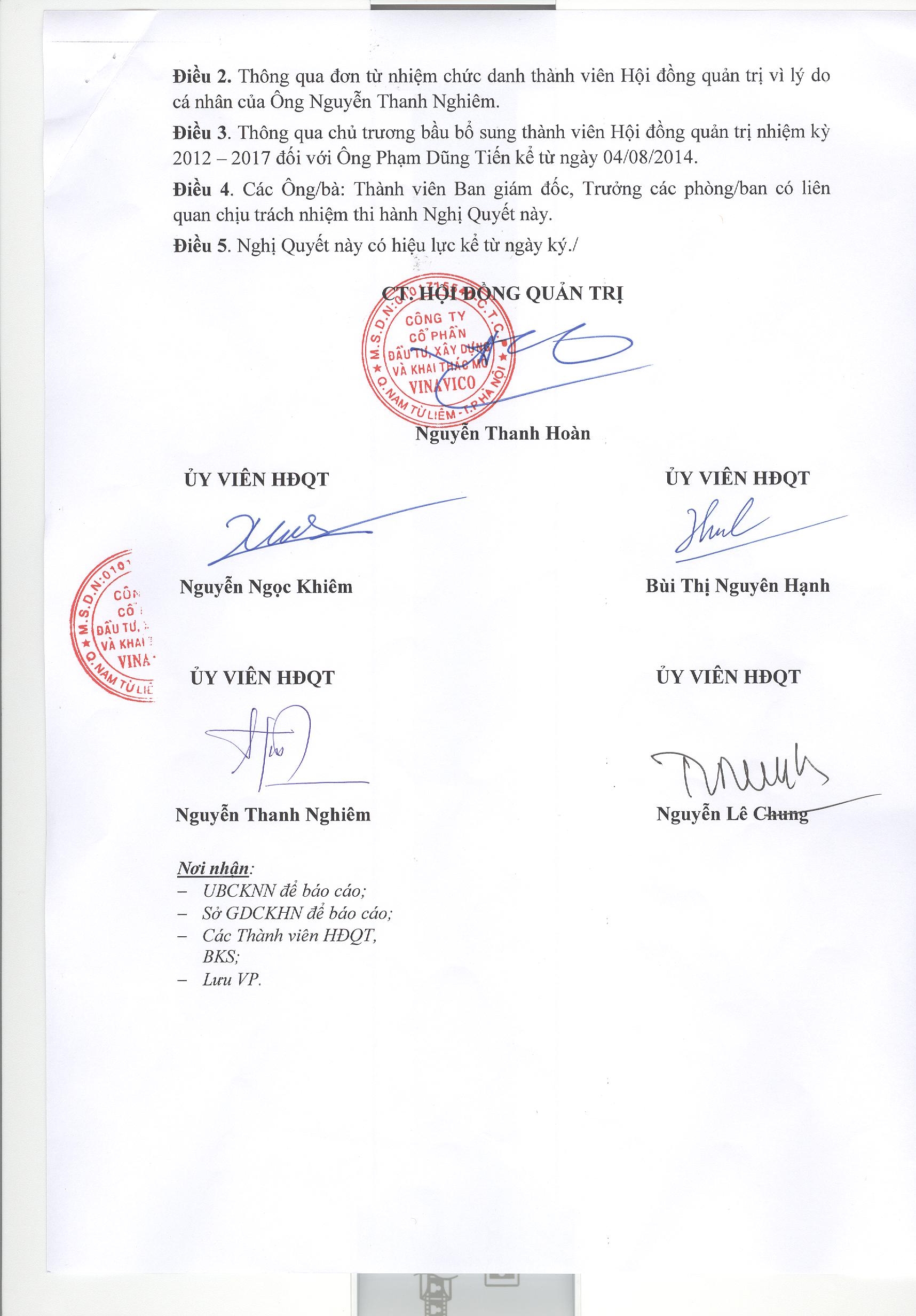 | Nghị quyết Hội đồng Quản trị | 04-09-2014 | |