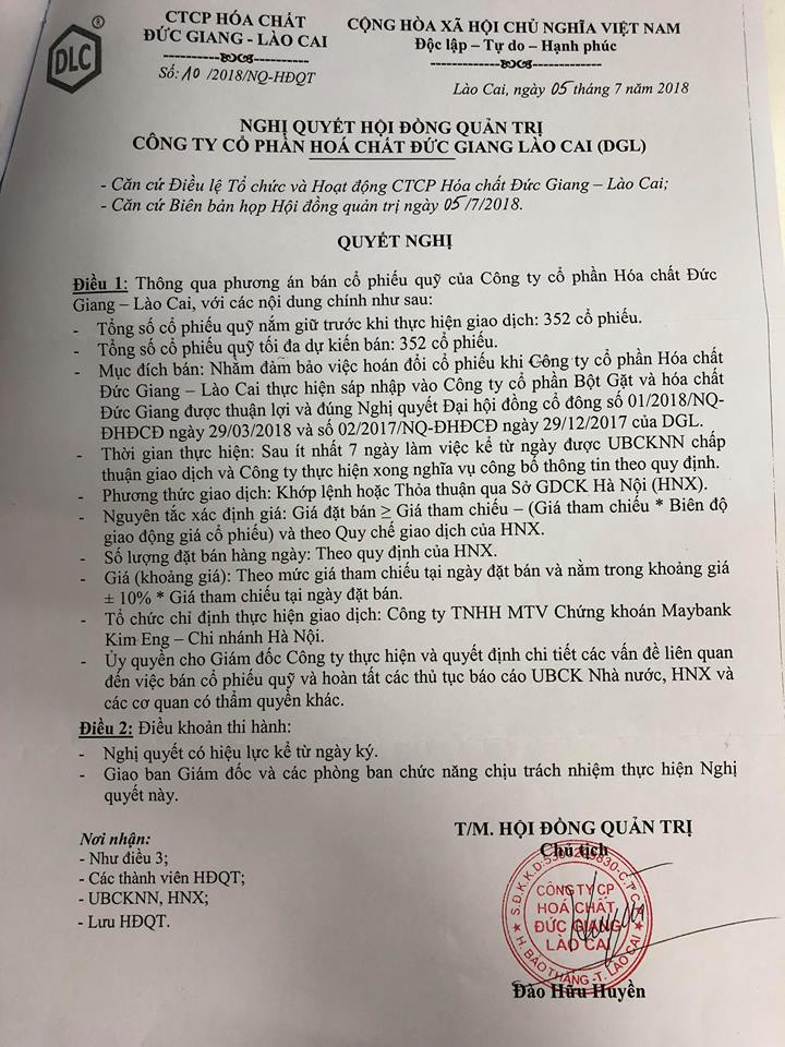 | Nghị quyết Hội đồng Quản trị | 01-08-2018 | |