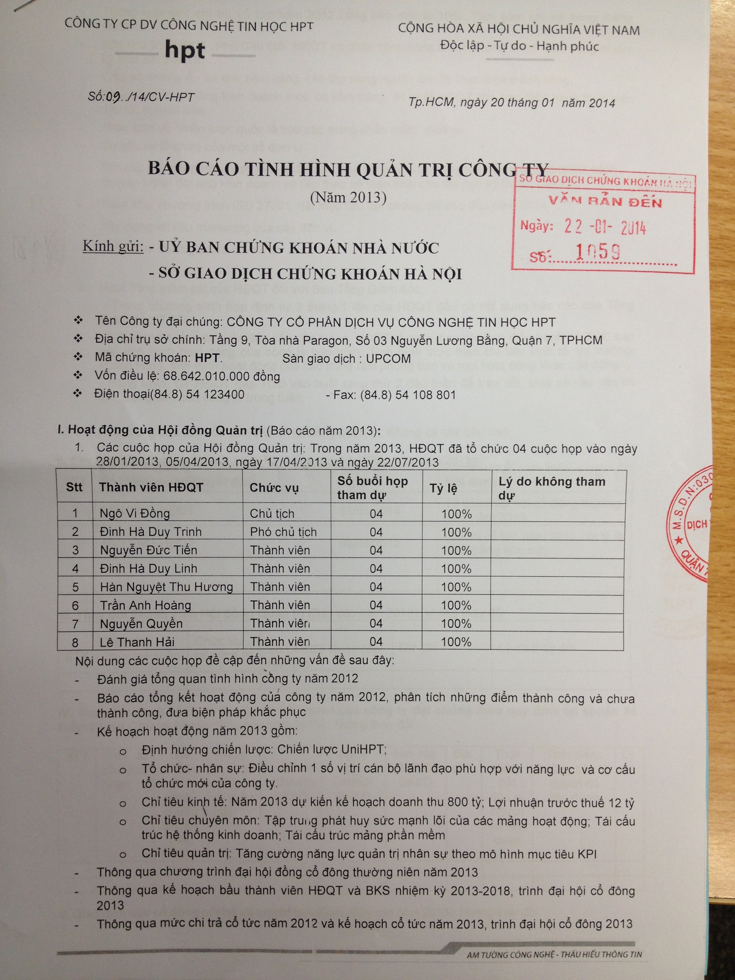 | Báo cáo tình hình quản trị công ty | 23-01-2014 | |