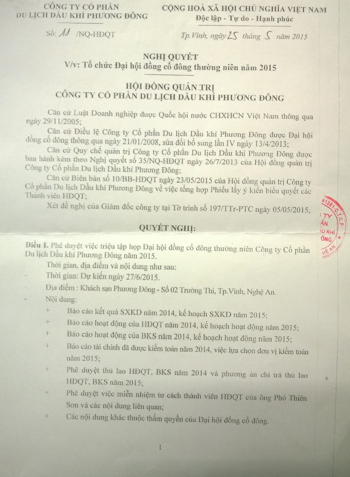 | Nghị quyết Hội đồng Quản trị | 25-05-2015 | |