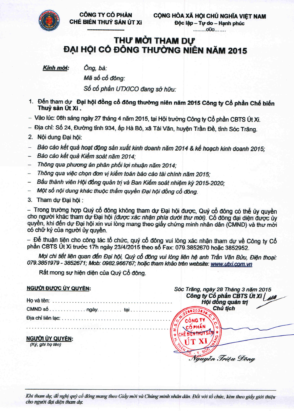 | Nghị quyết Đại hội cổ đông thường niên | 27-04-2015 | |