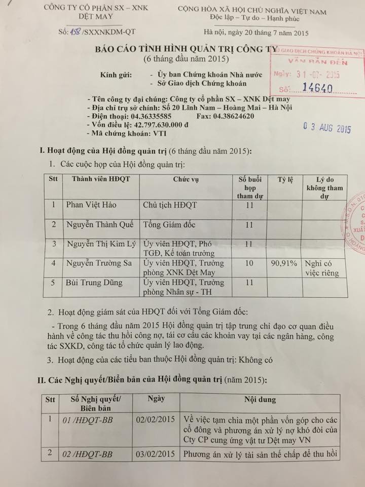 | Báo cáo tình hình quản trị công ty | 31-07-2015 | |